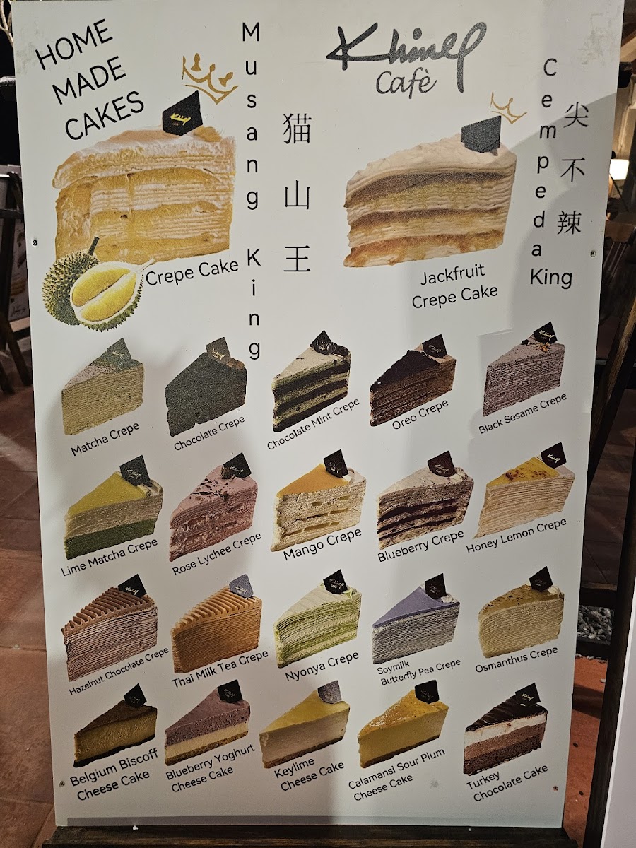 The menu at this cafe offers a variety of options suitable for different times of the day, including coffee breaks and light meals. Visitors can find a selection of coffee and other beverages, with particular emphasis on specialty coffee drinks. The food offerings include light meals and a range of dessert options, notably various flavors of crepe cakes. The menu is designed to accommodate casual dining experiences, ideal for quick orders or relaxed visits.